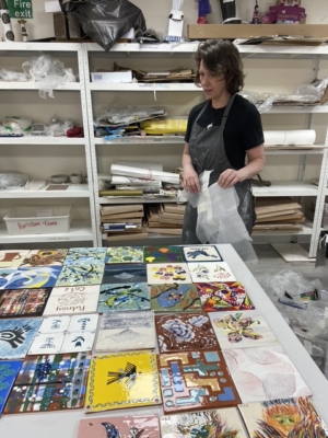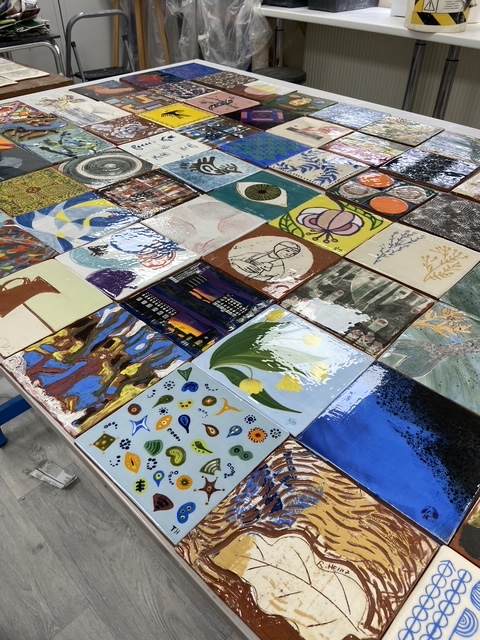 A very special THANK YOU too to tutor Leigh Jenkinson who has worked tirelessly to produce ready-made tiles for non-potters to paint, organised several tile painting sessions and glazed many of those tiles. Her support for this project has been invaluable.