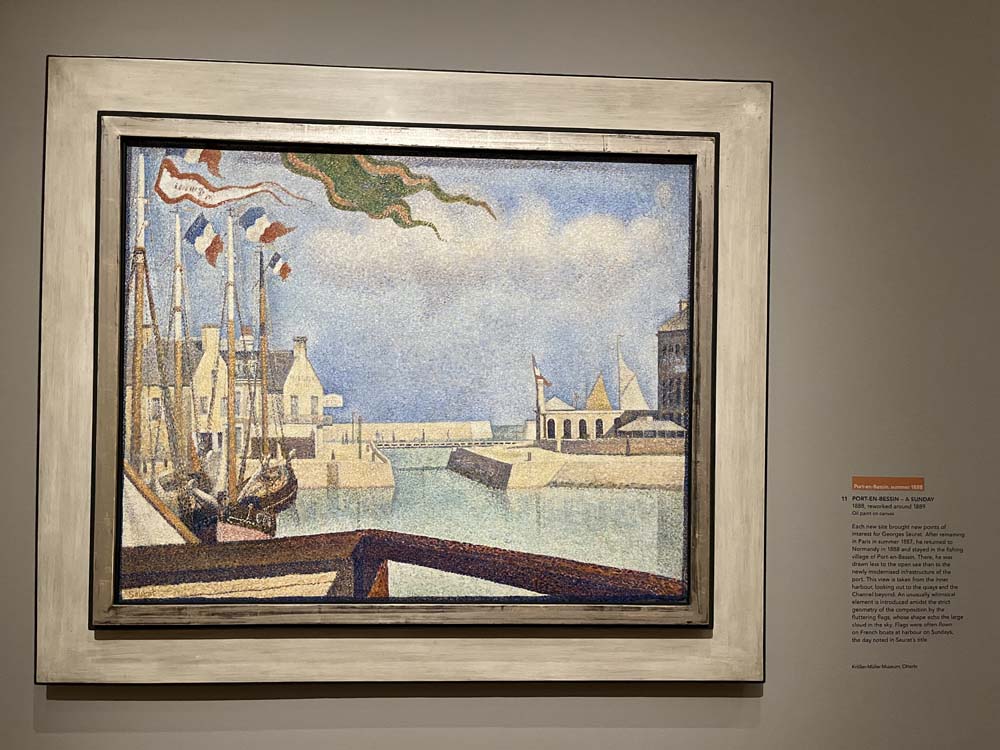 This exhibition is one for my heart. I was born at the small coastal town at Adriatic Sea, so the Seurat’s pointillistic brushwork, the places, colours, light, is most familiar scenery. This small exhibition of 26 romantic coastal views is calm, poetic, inspiring, an antidote to the present worlds noise. We got the last slot and were told it will close one minute before the closure, this did not prevent the gallery attendant to kindly chat to us, which went along the nostalgic sentiments.